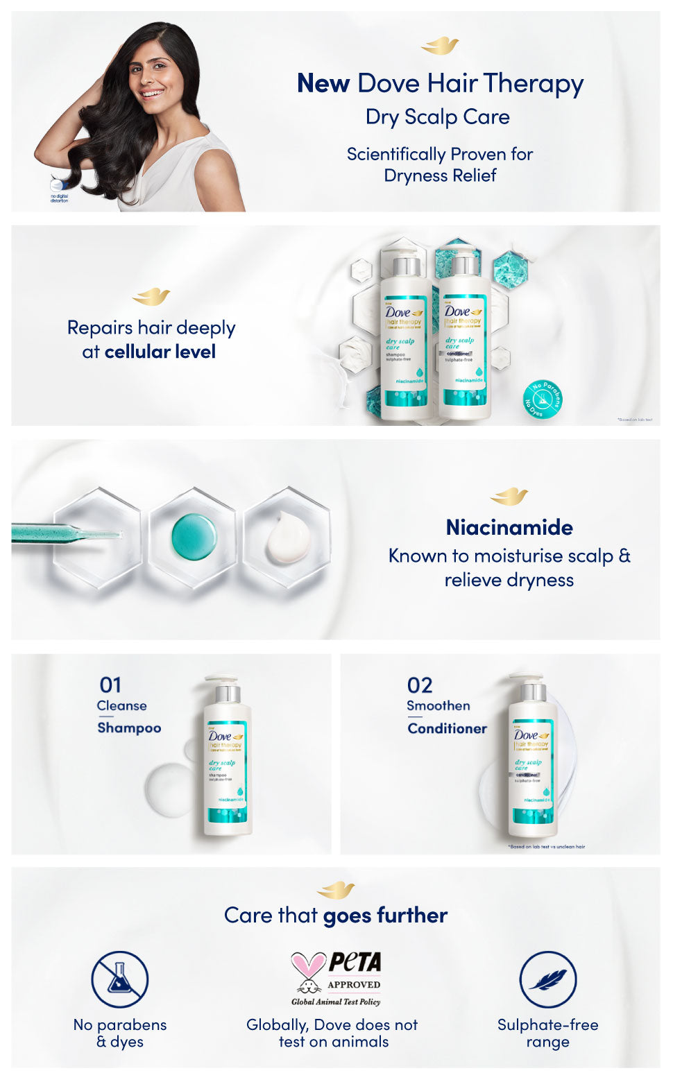 Dove Hair Therapy Dry Scalp Care Sulphate-Free Shampoo, No Parabens & Dyes, With Niacinamide | 380ml | MRP: Rs. 399.00/- | Quantity : 1 | 24 Months (From date of Manufacturing)