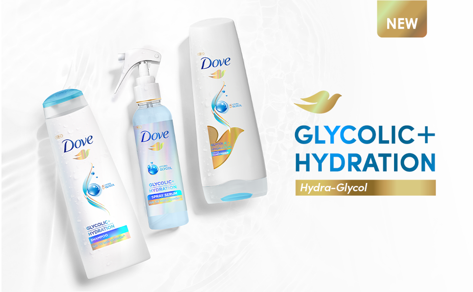 - DEEP HYDRATION WITH DOVE GLYCOLIC + HYDRATION SHAMPOO - A deeply hydrating shampoo with 5% HYDRA GLYCOL~ technology for hydrated, soft hair that moves naturally.