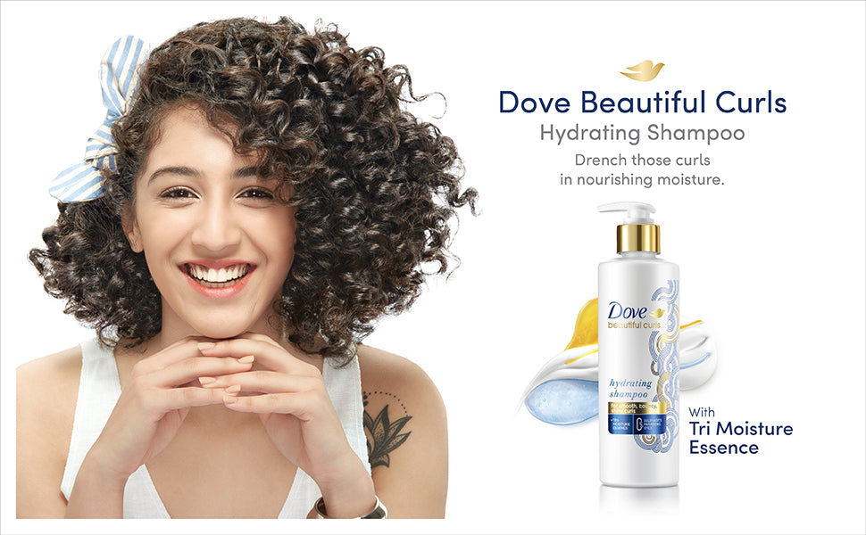 - TRI-MOISTURE ESSENCE: Dove Beautiful Curls range is infused with hydrating ingredients like Aloe, Shea Butter, Coconut Oil & Glycerine