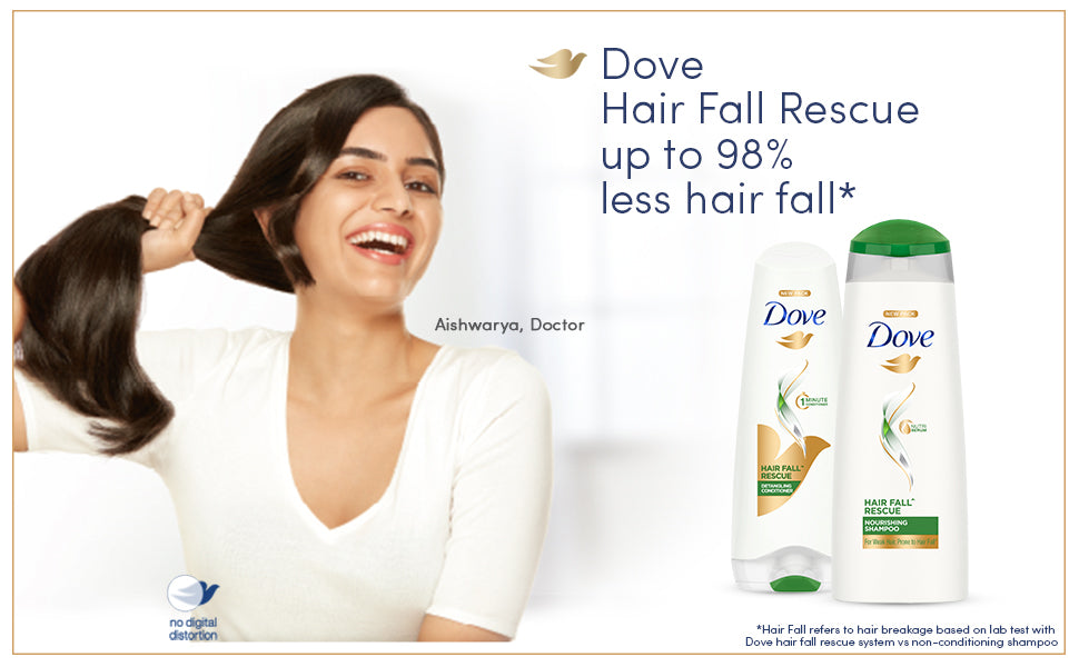• Healthier hair means lesser breakage and reduced hair fall*! Buy Dove Hair Fall Rescue Shampoo and forget your hair fall* troubles. Leaving your hair feeling strong and beautiful, day after day. Say no to hair fall worries and do more in life. Dove Hair Fall Rescue lets you be stronger, bolder and closer, every day.*Hair fall refers to hair breakage**Based on a lab test with Dove Hair Fall Rescue System vs non-conditioning shampoo