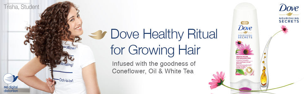 Tired of frizz that leaves your hair looking unmanageable and dry? Does tangled hair lead to hair breakage, hair fall? Look no further. Everyday damage can stress strands, leaving them prone to breakage and hair fall. Presenting New Dove Healthy Ritual for Growing Hair Conditioner is inspired by the rituals of North American women. The ritual uses natural ingredients like cone flower, oil and white tea which are known de-stressors, to nourish hair and help it reach its natural growth potential by keeping it healthy and long. Dove borrowed this healthy ritual and created the new Healthy Ritual for Growing Hair. Combined with the superior care of Dove, the formula instantly smoothens out the hair surface, preventing frizz and keeps hair looking smooth and shiny. It works to reduce frizz, making hair appear smooth and controls fly away hair. Due to strands being smooth, they detangle easily, minimizing breakage and letting your hair look long and smooth. Dove believes hair can look good at any length, as long as it is properly cared for. So give your hair the love it deserves. Buy the new Dove Healthy Ritual for Growing Hair shampoo and Dove Healthy Ritual for Growing Hair conditioner now!